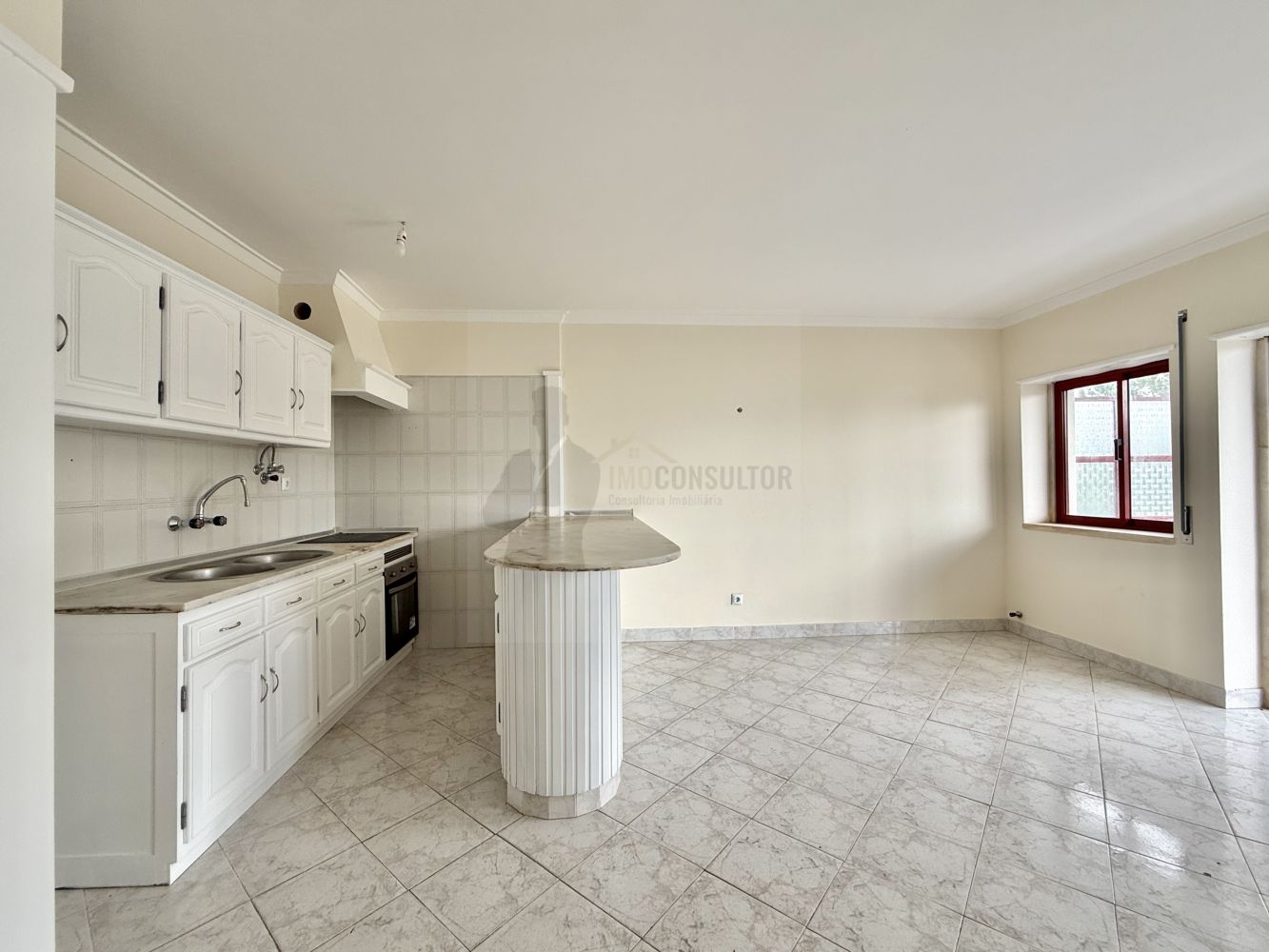 Zona Social: Sala e cozinha em plano aberto com 21,53 m². A cozinha está equipada com placa vitrocerâmica e forno.